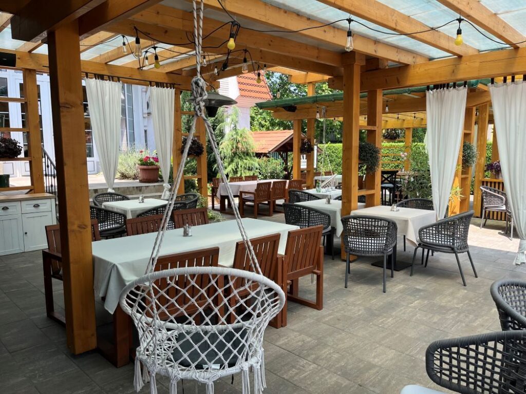 Von April bis November sorgt eine gemütliche Terrasse für das Wohlbefinden der Gäste, außerdem steht eine Laube für 80 Personen zur Verfügung, in der man bei einem kühlen Getränk entspannen kann.